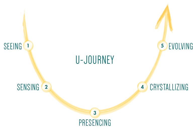 Our framework is adapted from Theory U, a method of awareness-based transformation that integrates behavioral science, contemplative traditions and systems thinking based on three decades of action research by the Presencing Institute at MIT. We frame all our engagements based on this 5-step approach, and design interventions for each step based on your context and needs.
